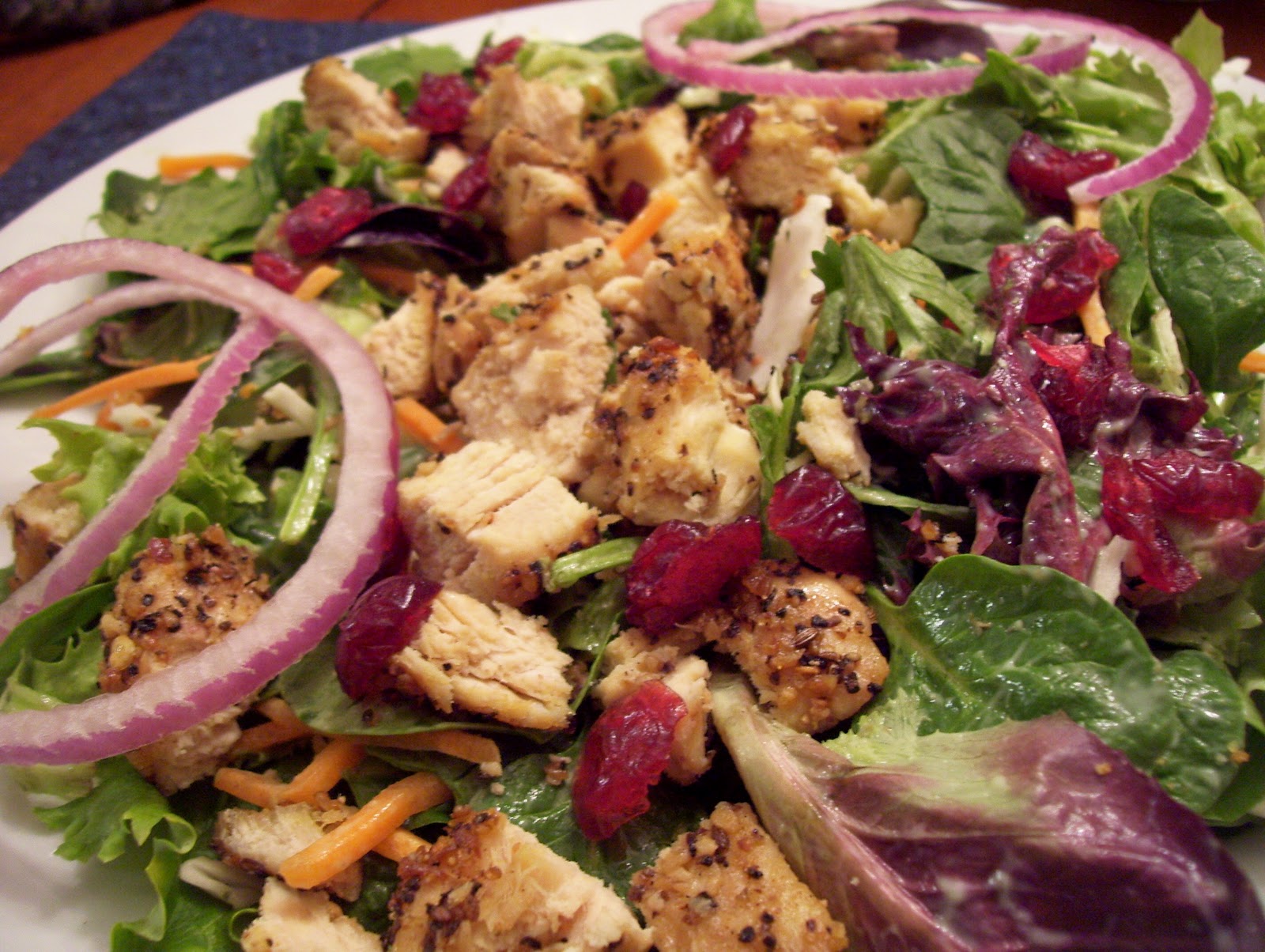 Yummy...the cool dressing went well with the SUPER spicy chicken! Scott swears he didn't go heavy handed on the Montreal Seasoning, but my mouth was on FIRE while I was eating this;) hahahahahaha....